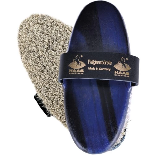 • A brush with soft white horse hair for extra shiny results with a leather hand strap