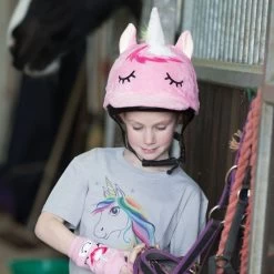 - A cute unicorn themed plush fleece hat silk for a riding helmets