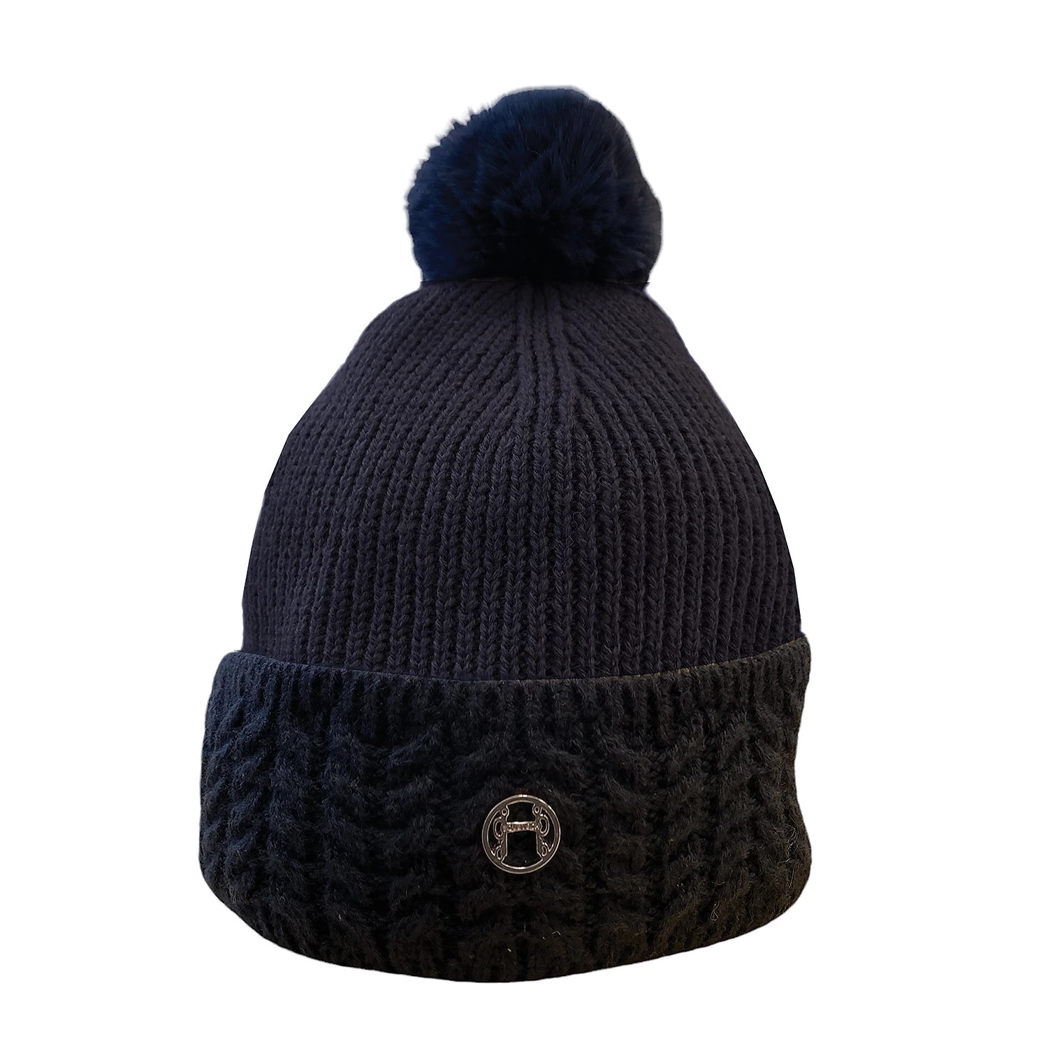 - Features an Equetechยฎ metal pelham badge to front with a large contrast faux fur pom-pom