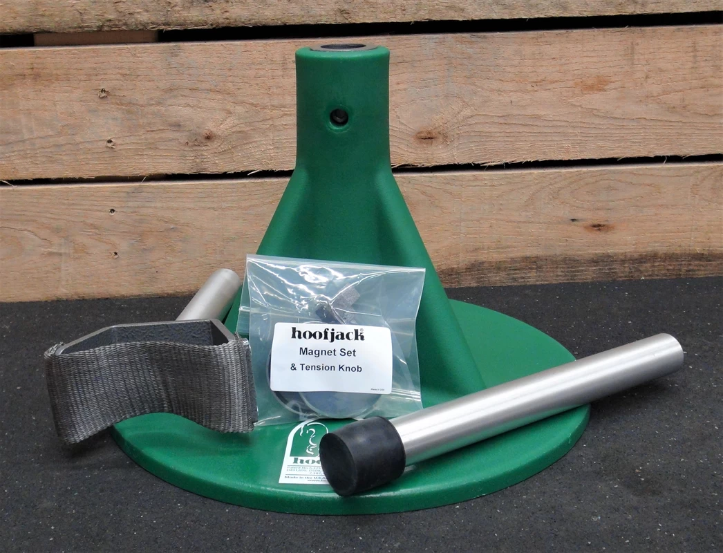 The Standard Hoofjack® Base with Accessories will accommodate a pony up to a small draft or draft cross (hooves up to a size 7)