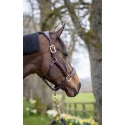 - Aย beautifully crafted, padded leather headcollar with elegant stitching detail for a classic look.