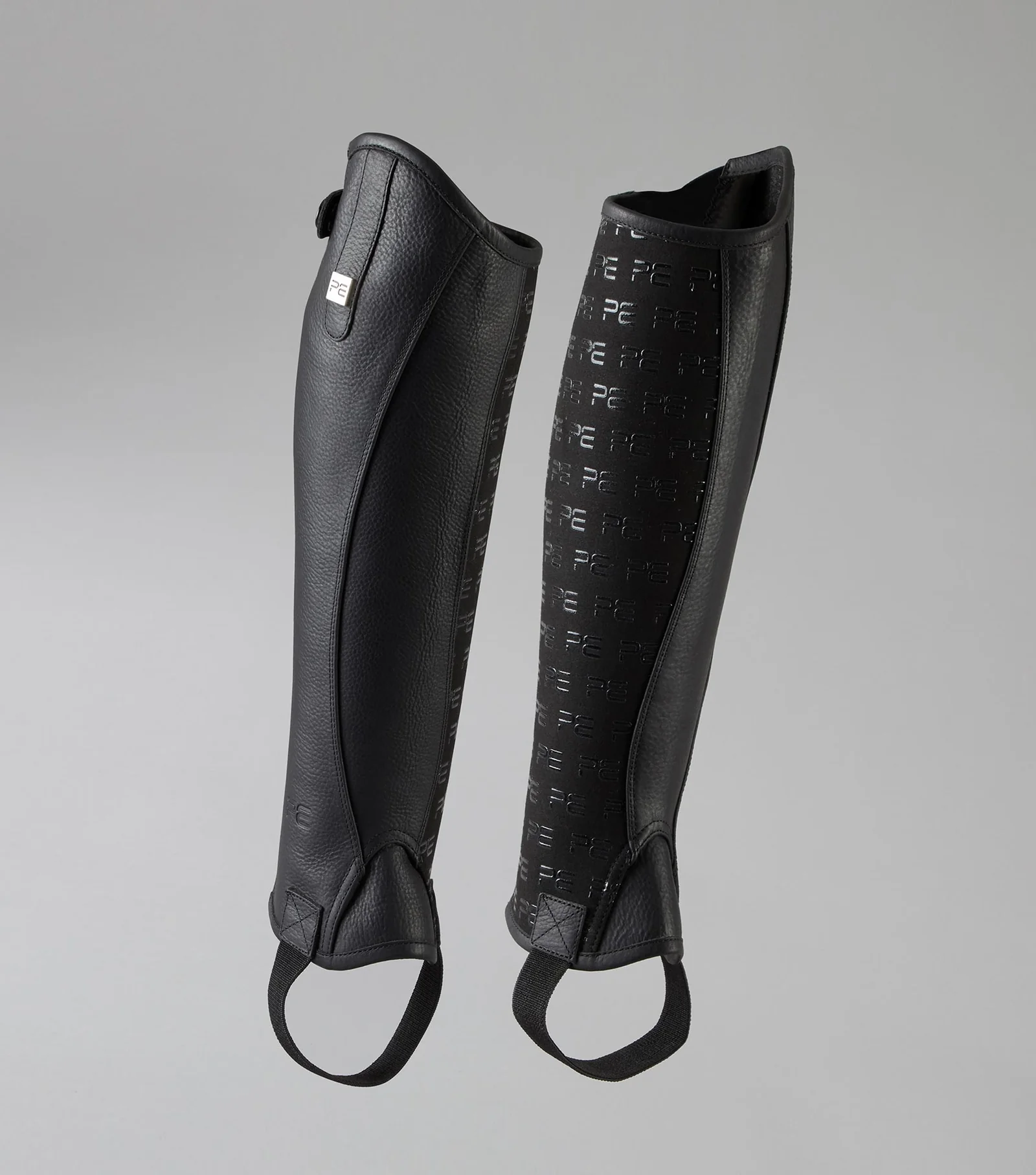 - For ease of wear the chaps incorporate a full-length elastic panel to provide an optimum, contoured fit and a full length YKK zip system, along with a skirt allowing them to fit over short boots for a smart and integrated appearance, making them perfect for every day and competition use.