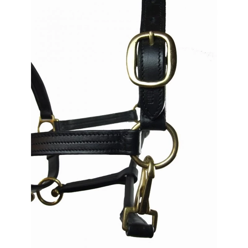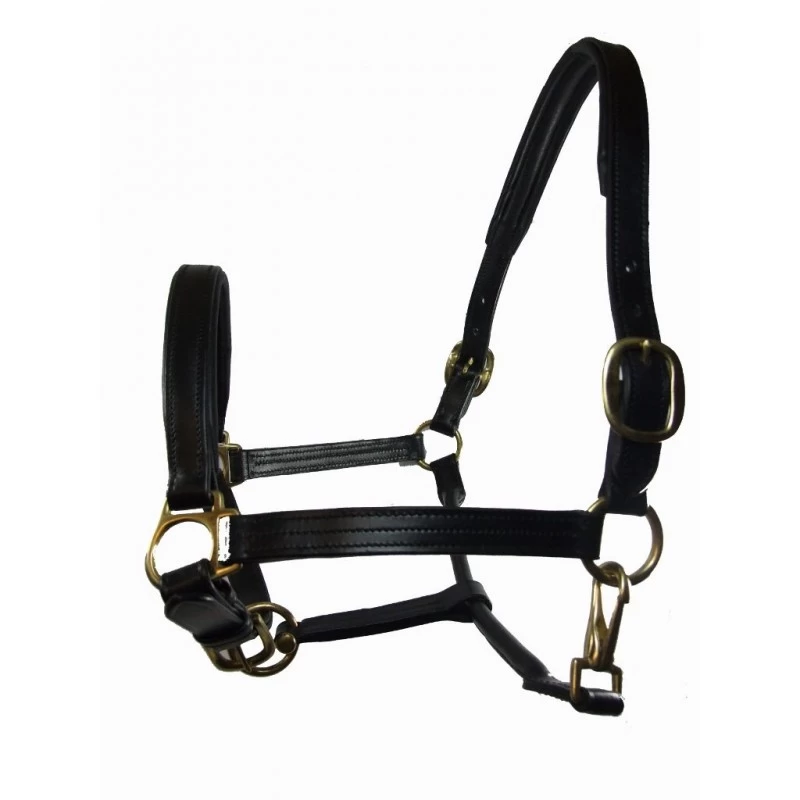 - Three Row Leather Headcollar, padded head and nose, round throat, buckles both sides,Solid Brass fittings throughout