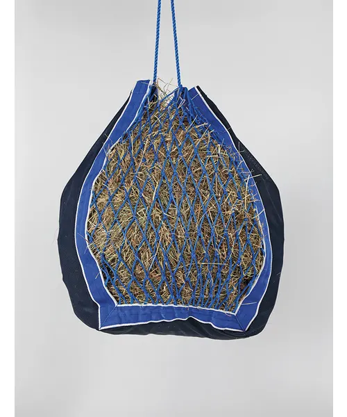 - An easy to fill hay bag with small mesh panels on both sides so that the horse has to work to eat