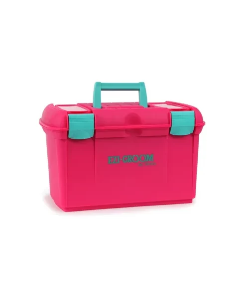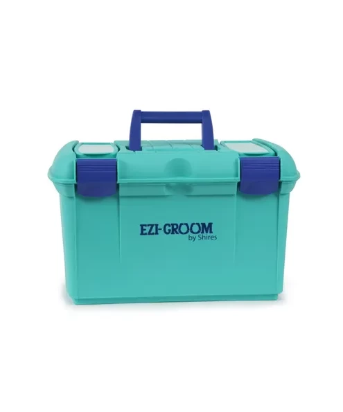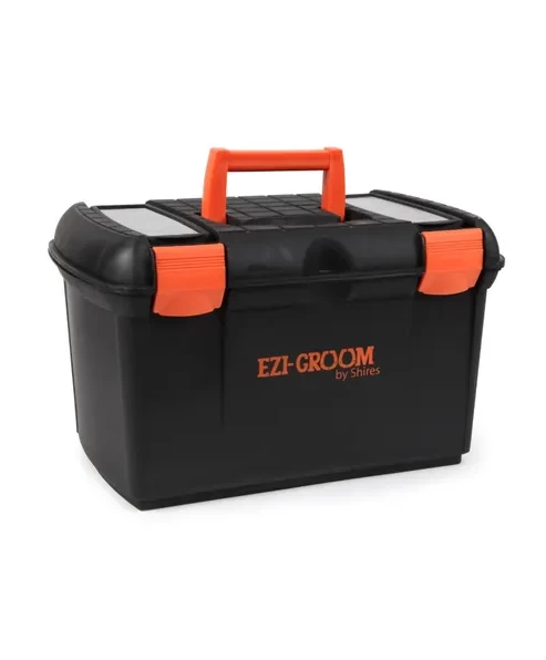 - A robust tack box with inner tray and lid compartments for storing smaller items