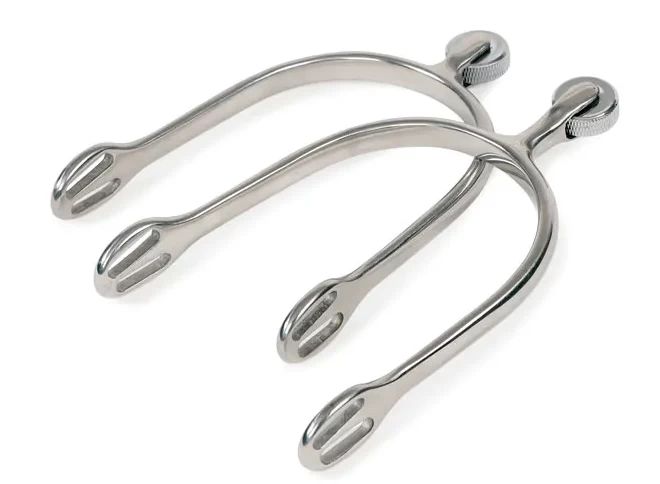 • A light touch rolls the horizontal rowel against the horse’s side, without the need to move the heel up or down