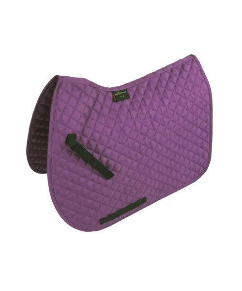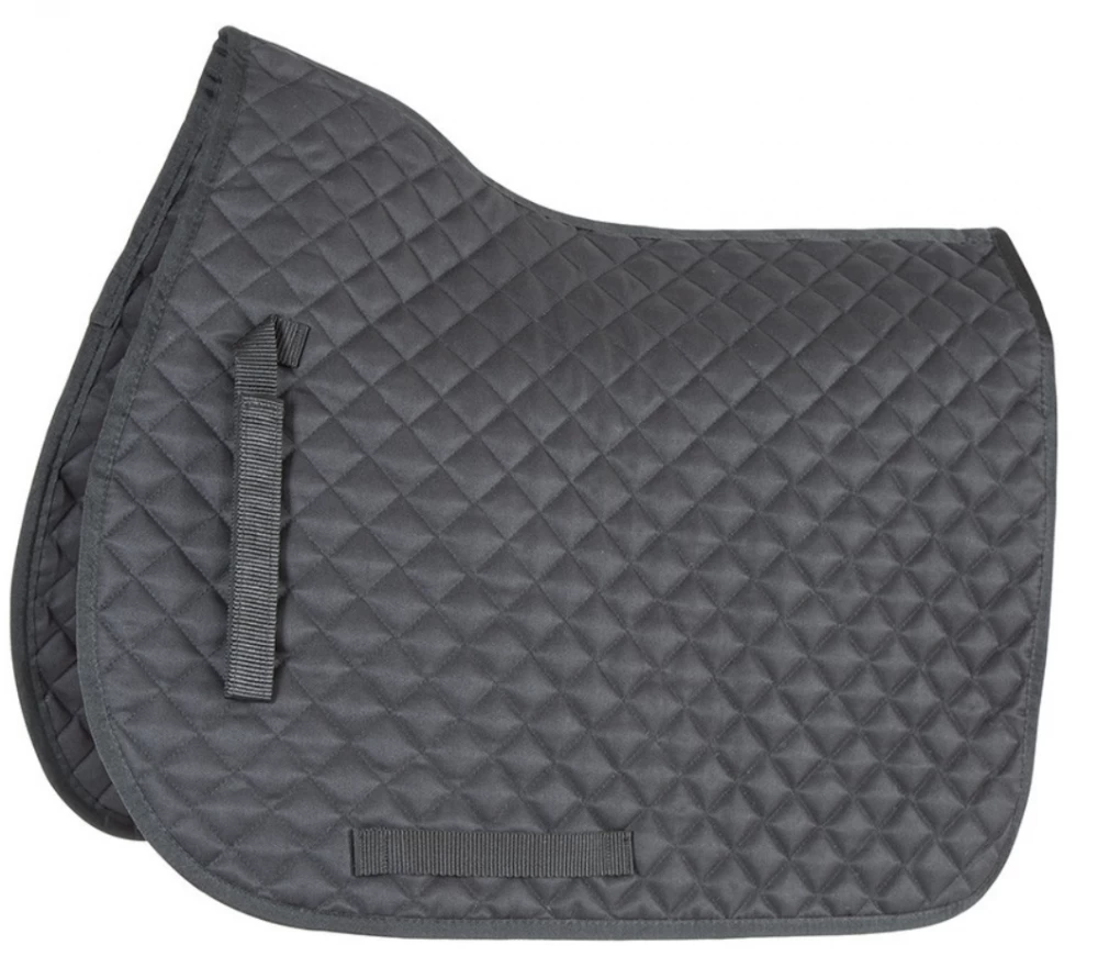 - Diamond quilt, touch close retaining straps and girth guides and bound edges