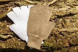 - A thick cotton knitted 3/4 fingered glove with long knitted cuff