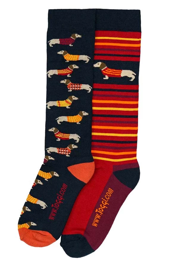 Bring some joy to your feet with the Toggi Ladies long socks. This pack of two socks contains different designs, each pair unique to the other. Your feet wonβt be feeling the cold with the cushioned sole providing even more comfort for all day wear.